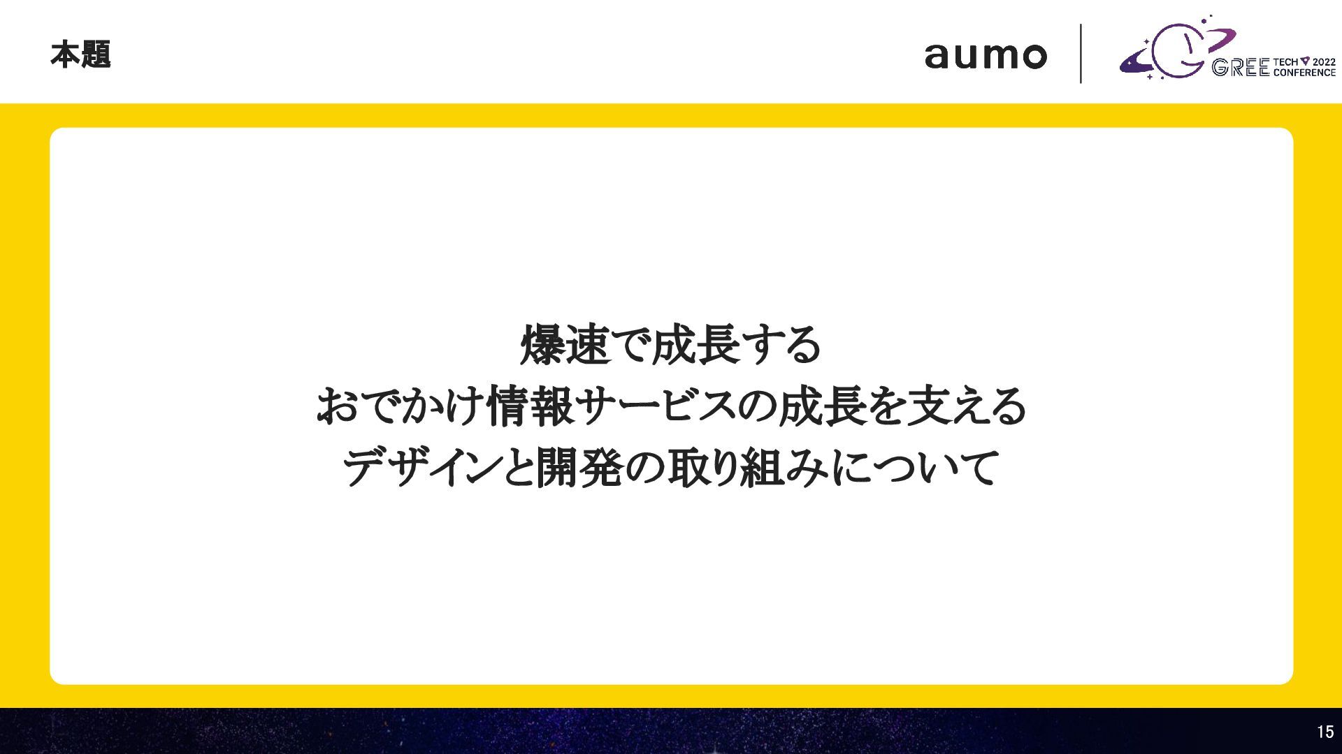 15 15 本題 爆速で成長する おでかけ情報サービスの成長を支える デザインと開発の取り組みについて