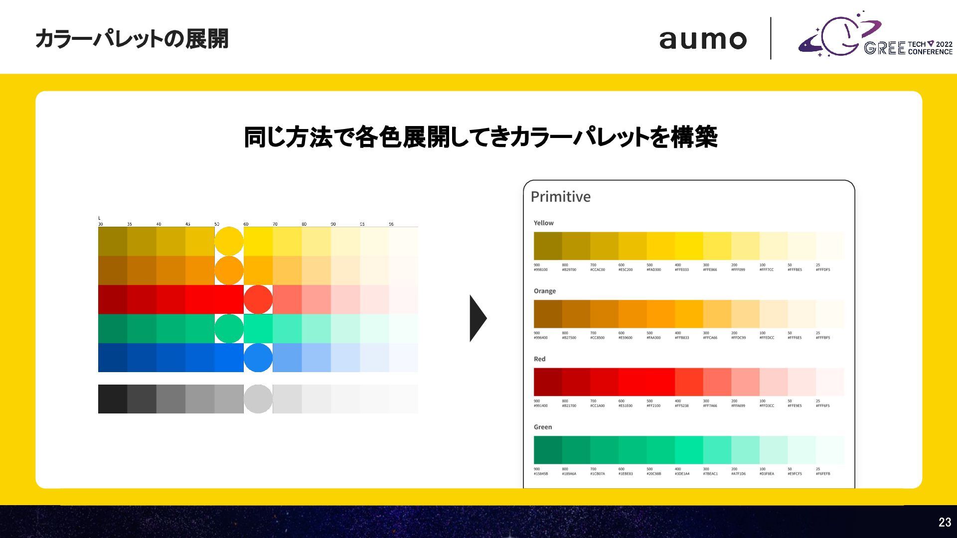 23 23 同じ方法で各色展開してきカラーパレットを構築 カラーパレットの展開