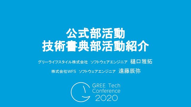 グリーライフスタイル株式会社 ソフトウェアエンジニア 樋口雅拓 株式会社WFS ソフトウェアエンジニア 遠藤辰弥 公式部活動 技術書典部活動紹介