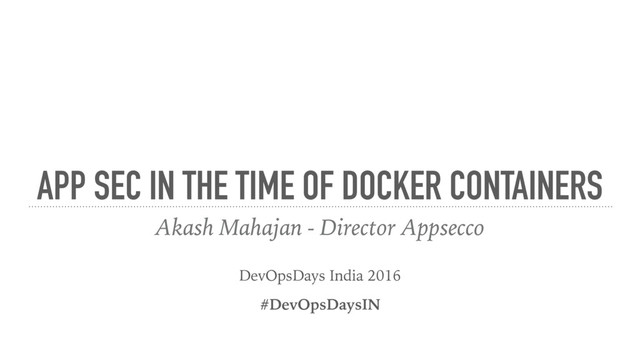 A look at how application security needs to evolve to keep up with applications that are containerised. Updated and refreshed completely for DevOpsDays India with a mapping of OWASP Top 10 and Docker Security Checklist to get started.
