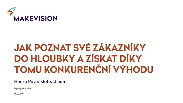 Tahle přednáška je hlavně o přínosech výzkumu Online focus group. Ukazujeme, kde všude v marketingu může pomoct to, když se podíváte do hlav vašich zákazníků, když půjdete dál než je za čísla v Google Analytics a začnete se s lidmi bavit. OFG vám pomůže při vymýšlení kampaní, při segmentaci zákazníků, při nastavení značky anebo v situacích, kdy jde o byznys. Podívejte se v prezentaci na to, jak si ji sami můžete uspořádat.