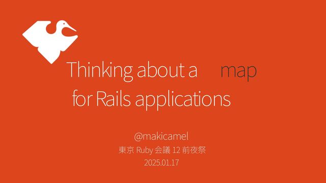 Thinking about a map for Rails applications 2025.01.17. 東京 Ruby 会議 12 前夜祭 https://github.com/makicamel/erd_map