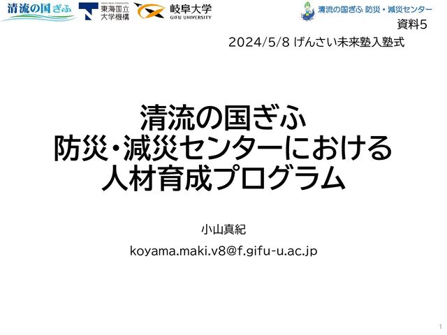 清流の国ぎふ 防災・減災センター 清流の国ぎふ 防災・減災センターにおける 人材育成プログラム 小山真紀