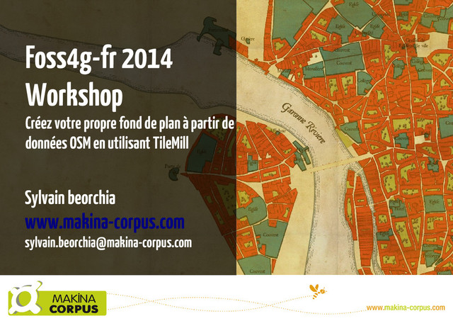 style « dessiné » aux batiments : Télécharger la trame : http://foss4g.2tokiislands.com/trame.png Et l'enregistrer dans le projet/img/ Appliquer cette trame aux batiments : Base.mss , à la fin du bloc des buildings, rajouter : #buildings { polygon-pattern-file: url("img/trame.png"); }