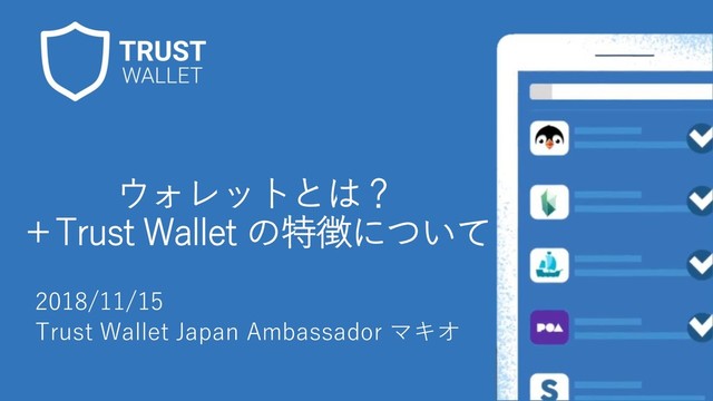 ウォレットとは? +Trust Wallet の特徴について 2018/11/15 Trust Wallet Japan Ambassador マキオ