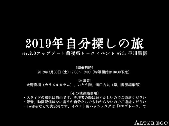 2019年自分探しの旅『ALTER EGO』ver.2.0アップデート前夜祭トークイベント with 早川書房