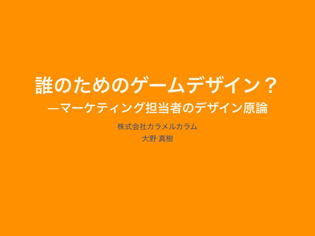 ୭ͷͨΊͷήʔϜσβΠϯʁ ―ϚʔέςΟϯά୲ऀͷσβΠϯݪ גࣜձࣾΧϥϝϧΧϥϜ େ ਅथ