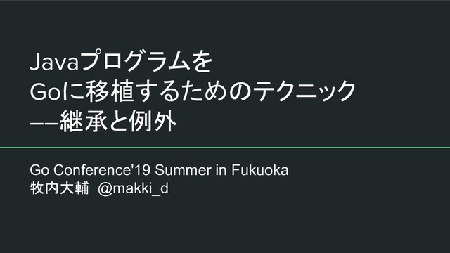 Javaプログラムを Goに移植するためのテクニック ――継承と例外 Go Conference'19 Summer in Fukuoka 牧内大輔 @makki_d