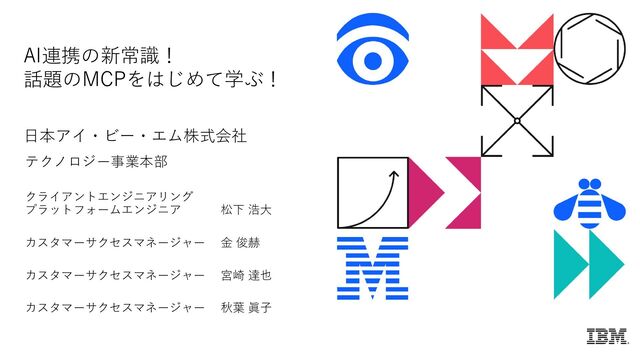 日時 : 2025年12月3日(水)9:00-19:00(懇親会含む) 会場 : 東京国際フォーラム 参加費 : 無料 参加方法: 事前登録制 Register today → URL: https://www.ibm.com/events/reg/flow/ibm/ dzcwizmb/createaccount/page/contactInfo おすすめのブレイクアウト・セッション • [G602-6] Project Bobを使ったAI駆動型の業務アプリ設計・実装入門 • [G604-4] Maximo v9.1最新情報とデモ紹介 • [G607-3] AI×オンプレ×マルチクラウド - システム連携の新時代へ • [G608-1,2] ハンズオンで体験 ノーコードで作るAIエージェント • [G609-1] 現場から始める AIエージェント開発 - 要件定義から本番導入まで 注意事項! • 登録時の「紹介者」欄には以下のどちらかの名前・メールアドレスを 記載いただきますようお願い致します。 • 松下 浩大(