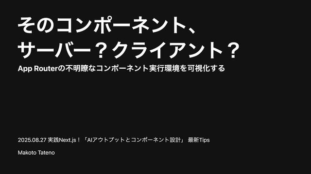 import Article import Container import Comments import 'use client'; Comment Button import import Context children 'use client'; Text import import Heading import use client ディレクティブがあるコンポーネントから先 の import はクライアントコンポーネントに コンポジションによりサーバーコンポーネントをクライアン トコンポーネントよりも深い階層に配置できる 複数箇所で利用されるサーバーコンポーネントは、利用元に よって実行環境が変わり得る