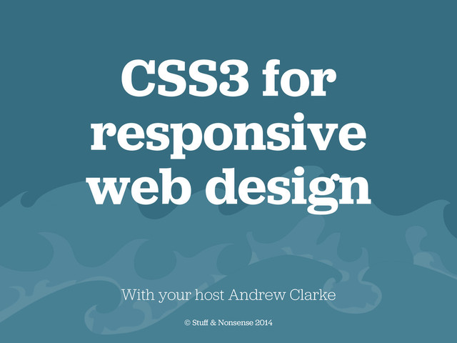 This workshop’s not all talk as you’ll work with practical, everyday examples of responsive Web designs and see them working across a range of devices from mobile phones to desktops and everything in between. You’ll walk away with a full set of resources and example files too.