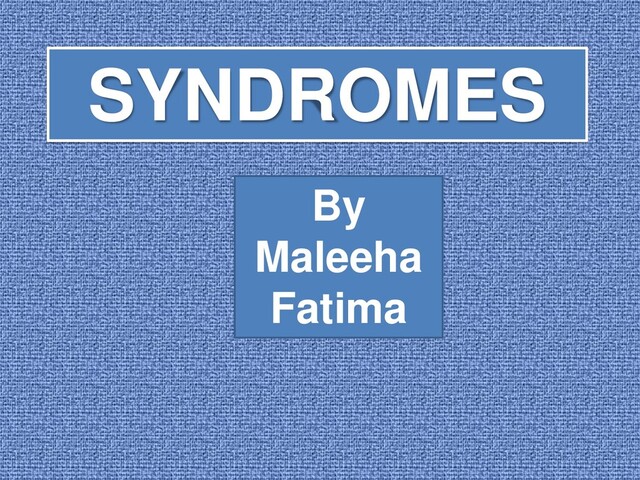 4. Werewolf syndrome 5. Stone-man syndrome 6. Alien-hand syndrome 7. Premenstrual syndrome 8. Noonan syndrome 9. Apert syndrome 10. Ehlers-Danlos syndrome list of syndromes discussed here: By MaleehaFatima