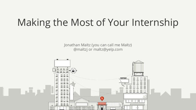 Knowing what you want out of a full time position 3. Having a great time • Communication • Technical • Workflow • Culture ◦ Frustration Principle • Meet People! • Intern Programs • Work sustainably