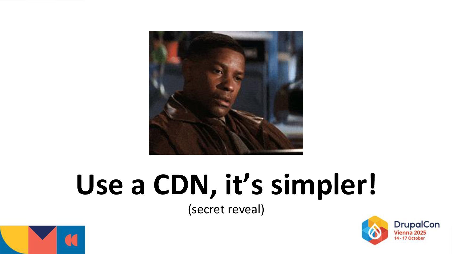 "Want to know a secret? Use a CDN! It's simpler! CDNs handle all this for you. Cloudflare, Fastly, Akamai. They already support everything. TLS 1.3. HTTP/3. QUIC. Zero RTT. All automatic. But it's good to understand how it works!"