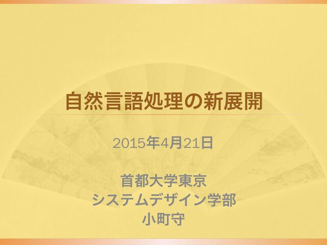 ࣗવݴޠॲཧͷ৽ల։ 20154݄21 टେֶ౦ژ γεςϜσβΠϯֶ෦ খொक