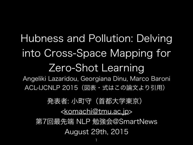 Angeliki Lazaridou, Georgiana Dinu, Marco Baroni. Hubness and Pollution: Delving into Cross-Space Mapping for Zero-Shot Learning. ACL-IJCNLP 2015.