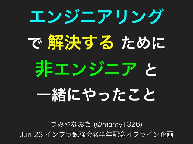 ΤϯδχΞϦϯά Ͱղܾ͢ΔͨΊʹ ඇΤϯδχΞͱ Ұॹʹͬͨ͜ͱ ·Έͳ͓͖ !NBNZ +VOΠϯϑϥษڧձ!ه೦ΦϑϥΠϯاը