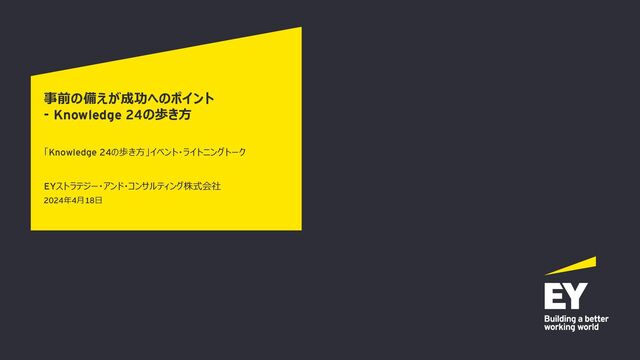 事前の備えが成功へのポイント - Knowledge 24の歩き方 「Knowledge 24の歩き方」イベント・ライトニングトーク 2024年4月18日 EYストラテジー・アンド・コンサルティング株式会社