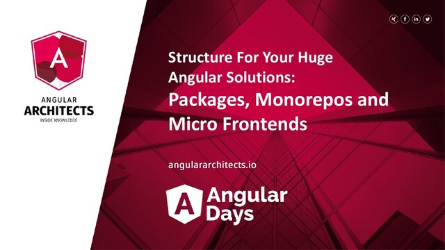 Feature Feature Feature Feature Feature Feature Feature UI UI UI UI UI UI UI UI UI UI UI UI UI UI UI UI UI UI Domain Domain Domain Domain Domain Domain Domain Domain Domain Domain Domain Domain Util Util Util Util Util Util Util Util Util Util Util Util Enterprise Monorepo Patterns, Nrwl 2018: https://tinyurl.com/y2jjxld7 @ManfredSteyer Shared Kernel (if really needed) & other libs Smart Comp. Dumb Comp.