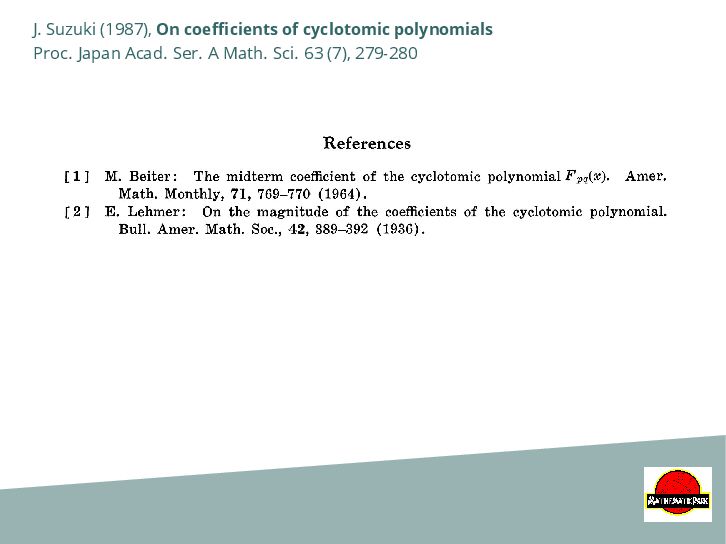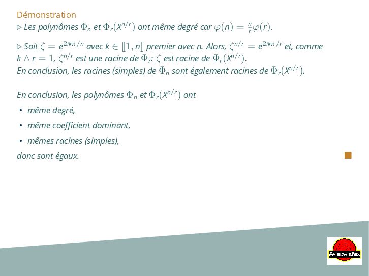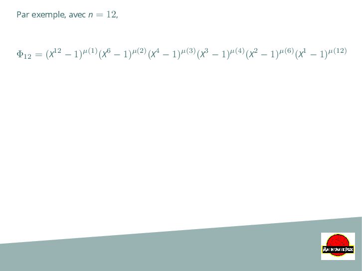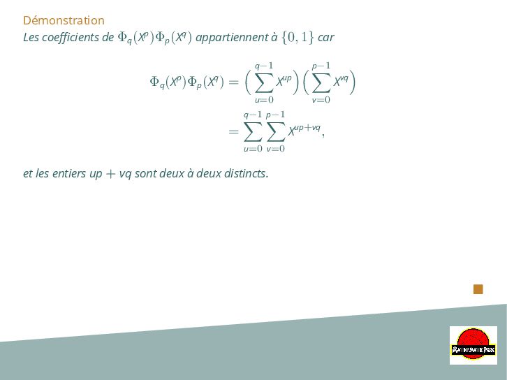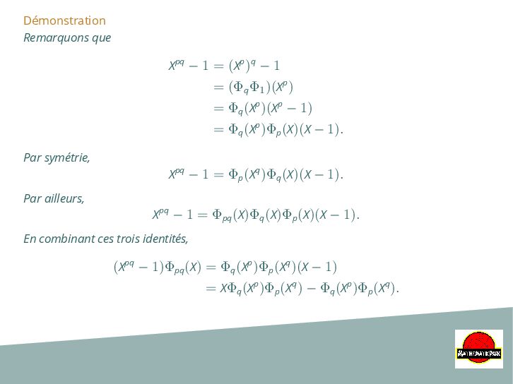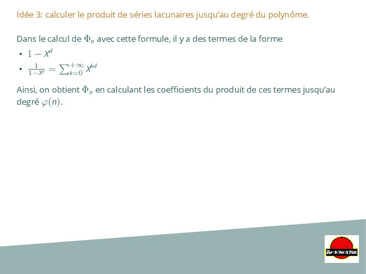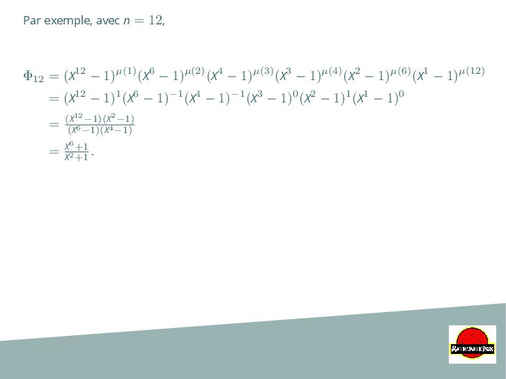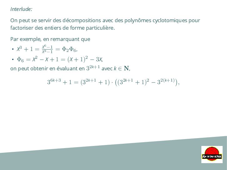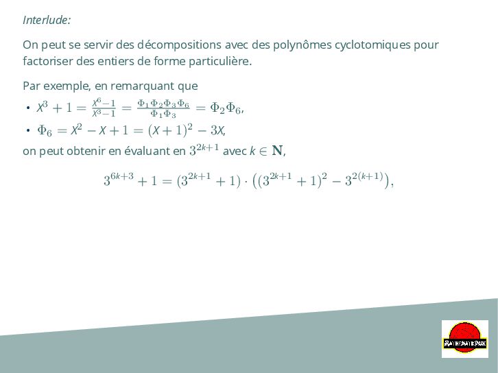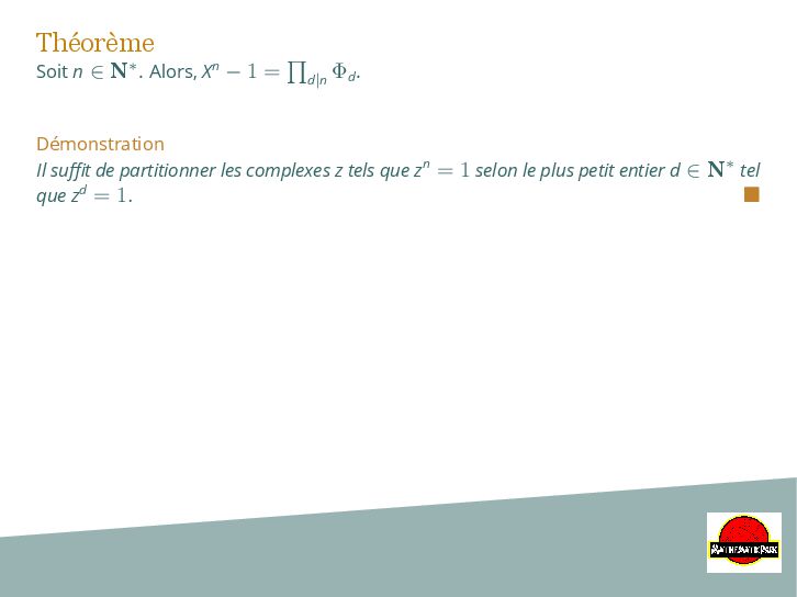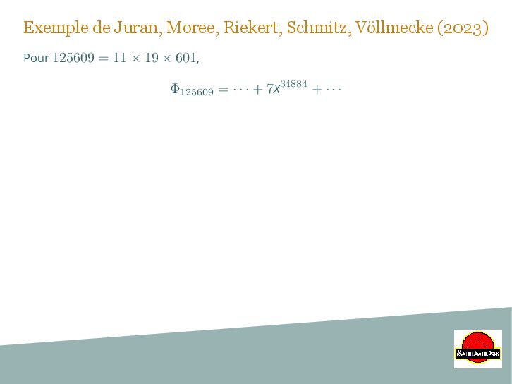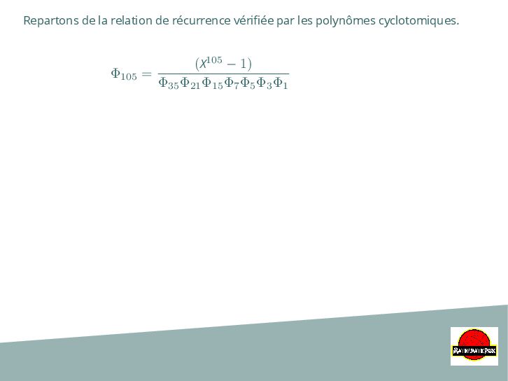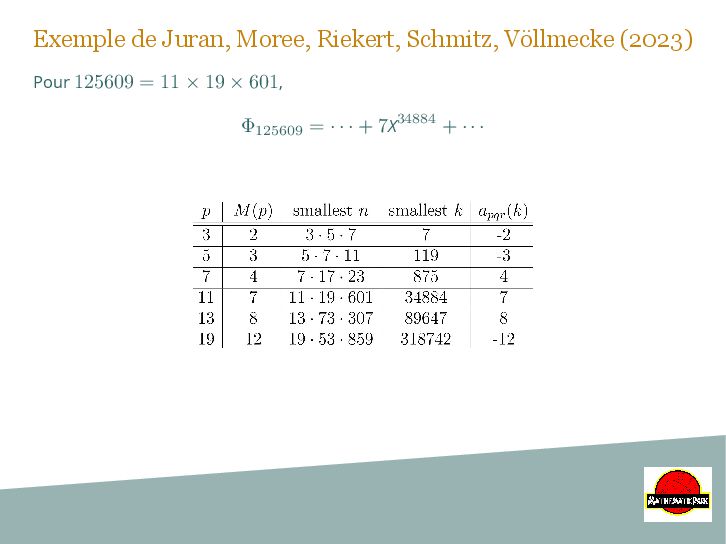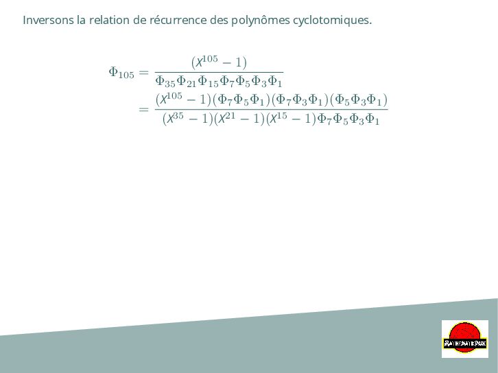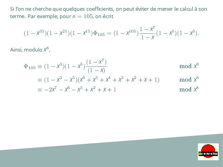 Résumé : Apparus dans les travaux de Gauss sur la constructibilité à la règle et au compas, les polynômes cyclotomiques sont des objets faciles à définir mais qui recèlent encore quelques mystères mathématiques. Avec cette balade historico-mathématique, on se propose d'examiner les coefficients de ces polynômes à travers un siècle de théorèmes (Migotti, Bang, Schur, Beiter et Suzuki)