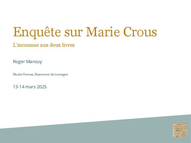 Intervention proposée dans le cadre de l'événement "Femmes en Sciences 82" au Musée Fermat à Beaumont-de-Lomagne devant des classes des lycées Antoine Bourdelle et Jules Michelet de Montauban