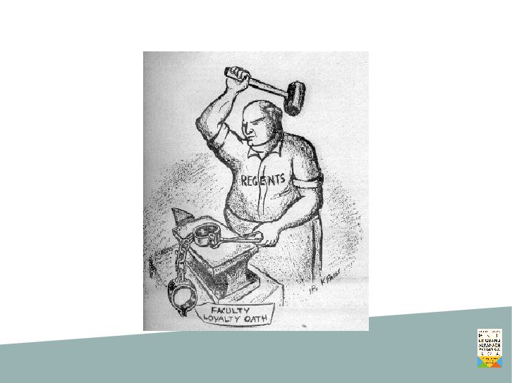 Sous quel prétexte? 1. il est accusé de fraude scientifique 2. il est responsable d’action terroriste sous le nom Unabomber 3. il a refusé de signer le Oath of loyalty 4. il a exigé que sa femme, Emma, soit recrutée comme professeure