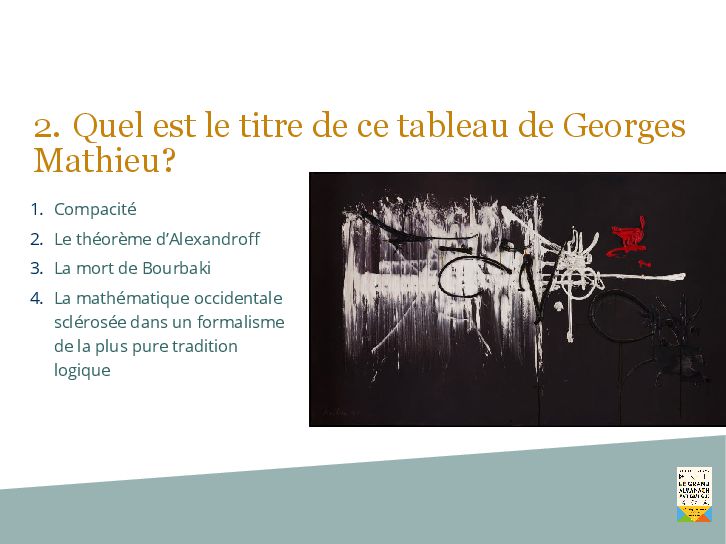 Mathieu? 1. Compacité 2. Le théorème d’Alexandroff 3. La mort de Bourbaki 4. La mathématique occidentale sclérosée dans un formalisme de la plus pure tradition logique