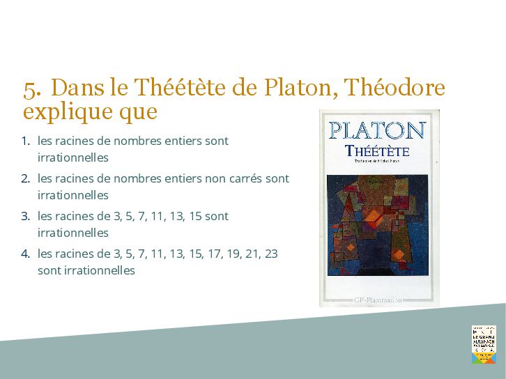 les racines de nombres entiers sont irrationnelles 2. les racines de nombres entiers non carrés sont irrationnelles 3. les racines de 3, 5, 7, 11, 13, 15 sont irrationnelles 4. les racines de 3, 5, 7, 11, 13, 15, 17, 19, 21, 23 sont irrationnelles