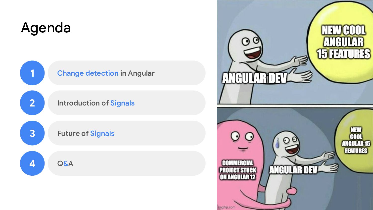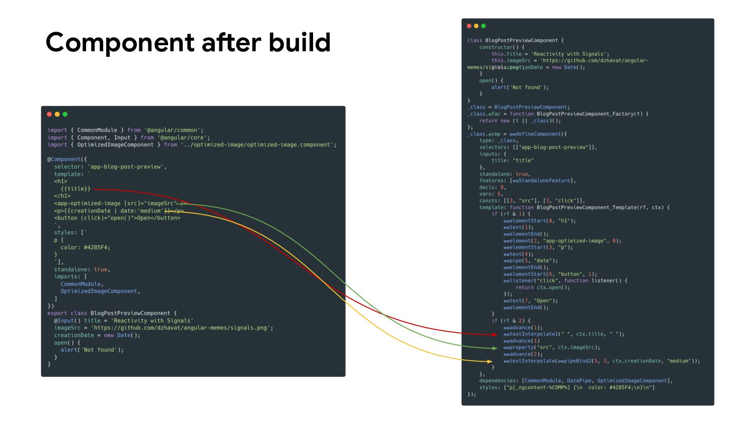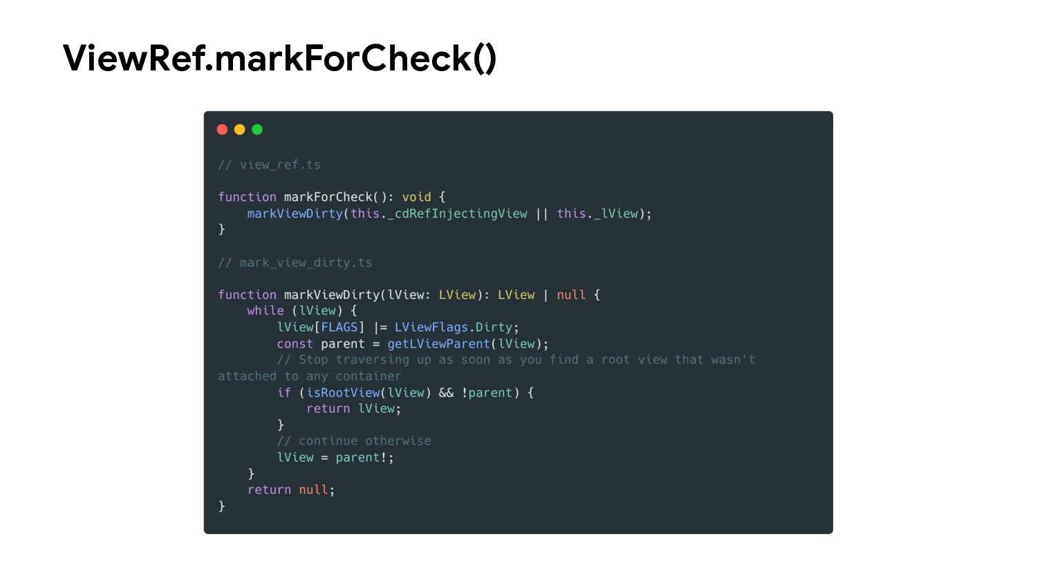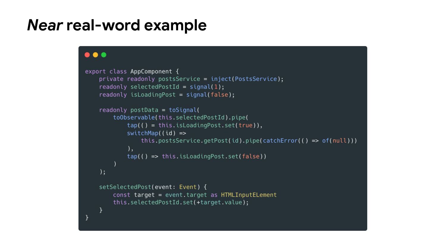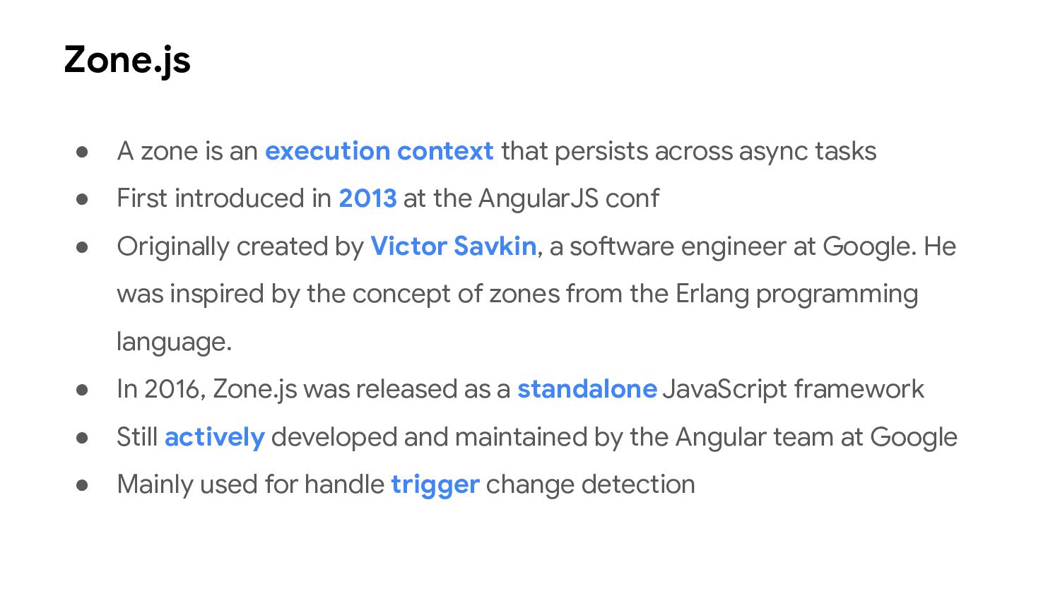 one or more signal values change • Similar to computed signals, effects keep track of their dependencies dynamically, and only track signals which were read in the most recent execution • Effects always execute asynchronously, during the change detection process • Avoid using effects for propagation of state changes.