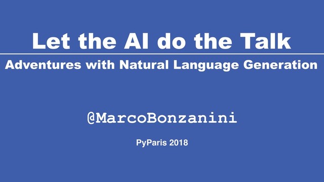 Generation @MarcoBonzanini PyParis 2018