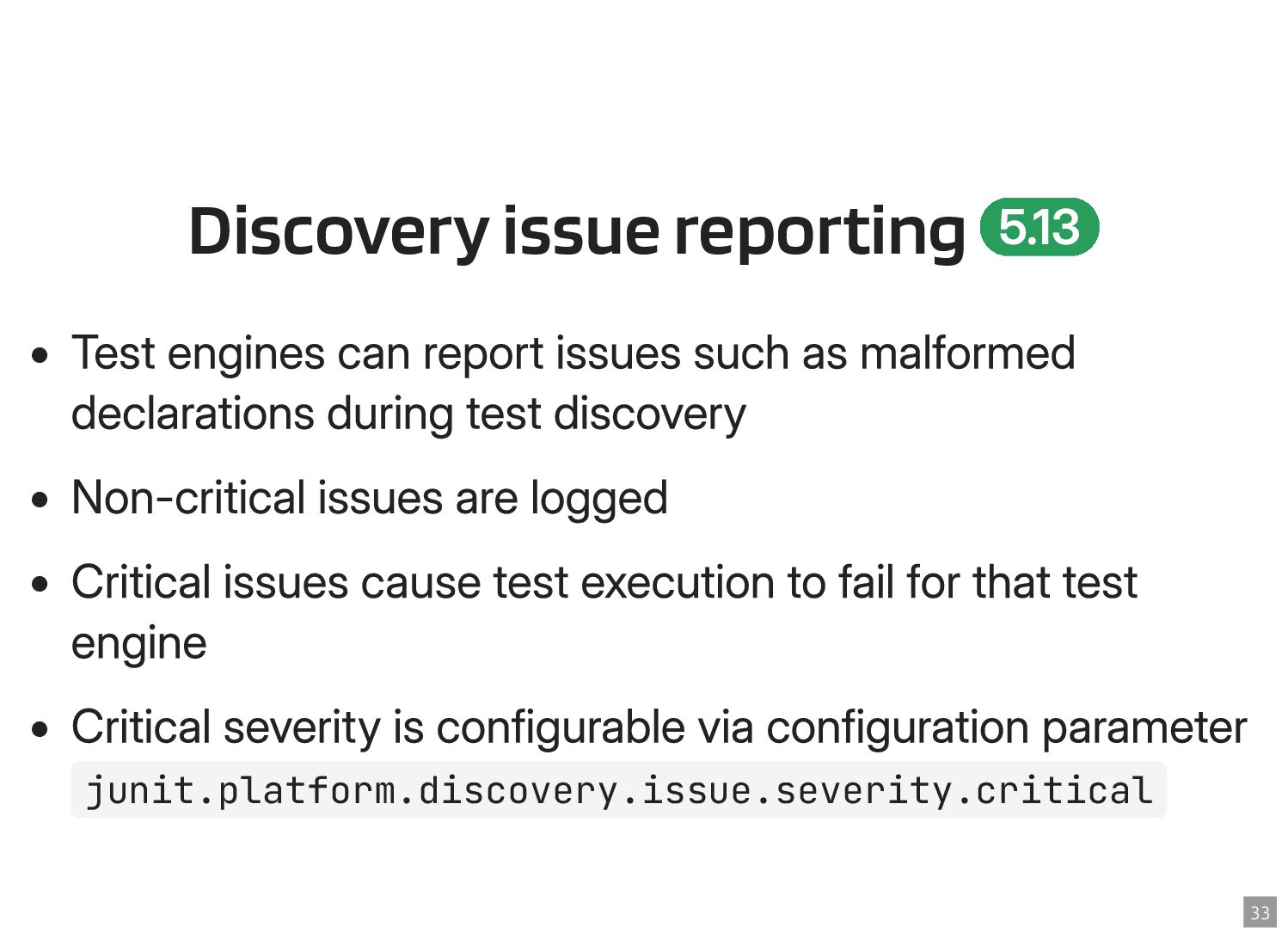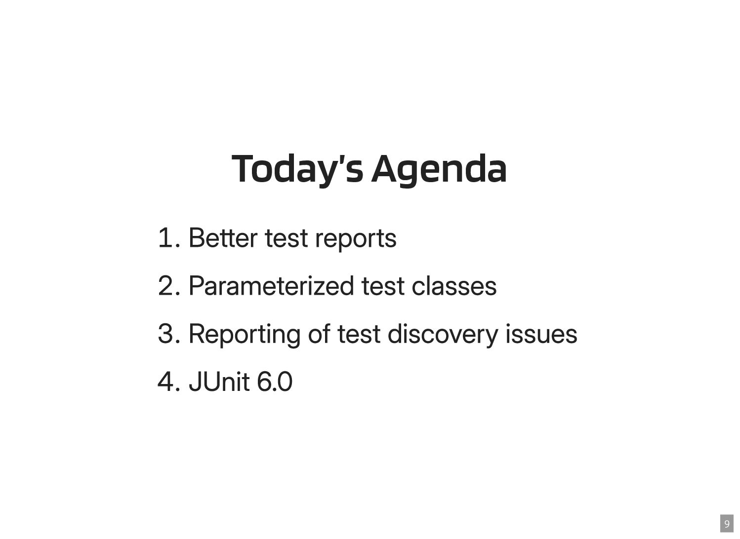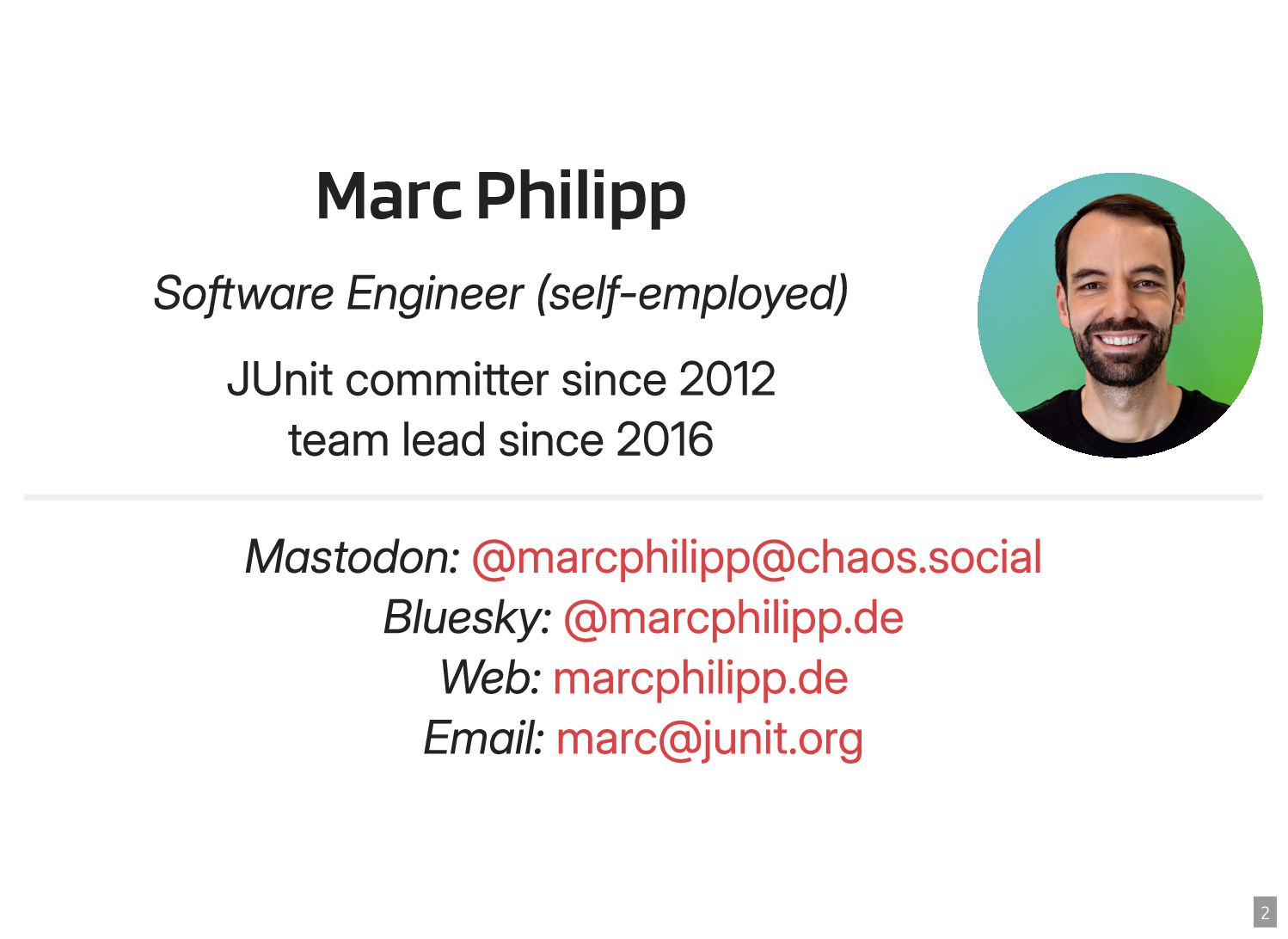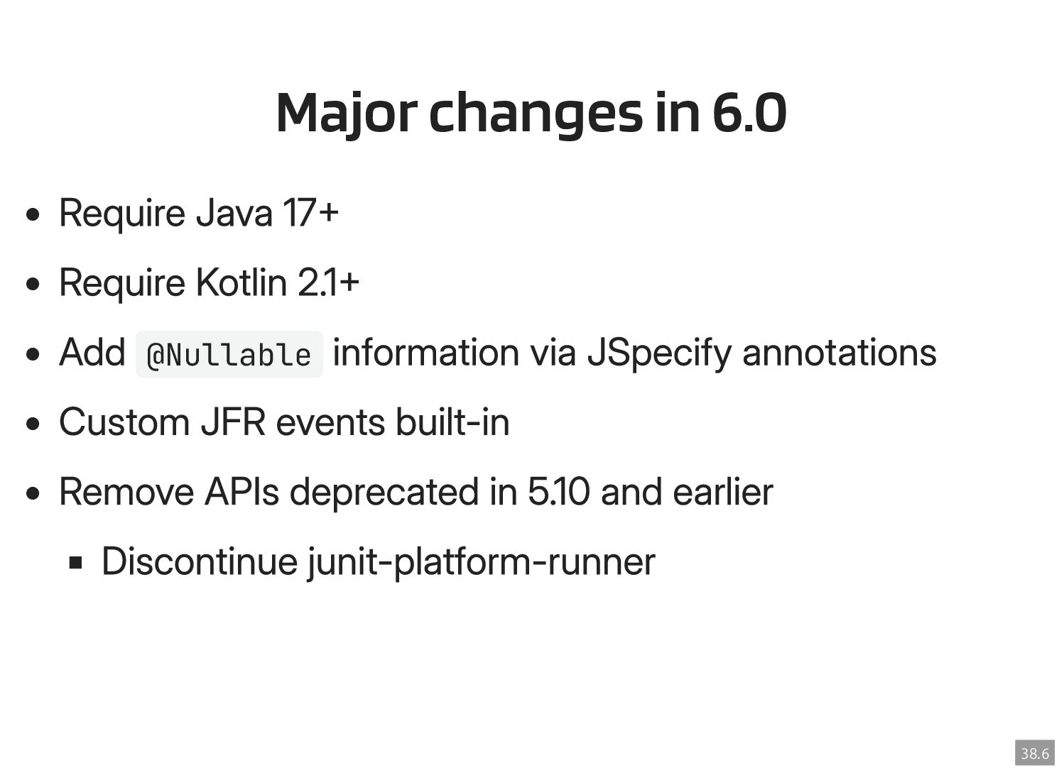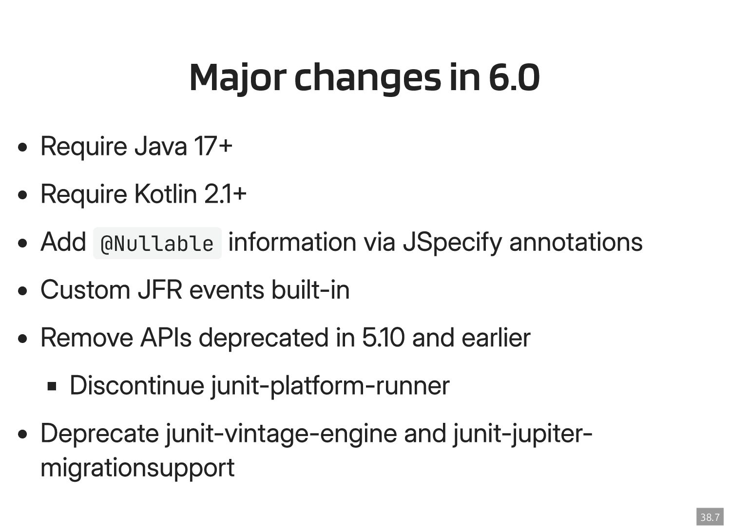 Thanks to the Sovereign Tech Fund I had the opportunity to work full-time on JUnit this year. In this talk, I‘ll report on my experiences and walk you through the new features and enhancements. Most prominently, those are Open Test Reporting, Parameterized Test Classes, Discovery Issues, and the new Java 17 and Kotlin 2.1 baselines.