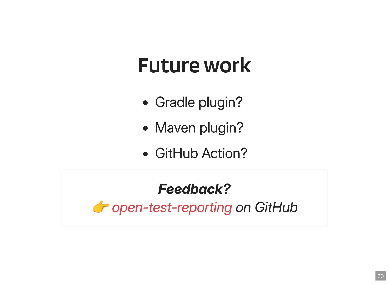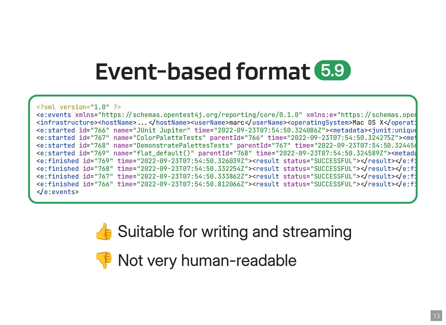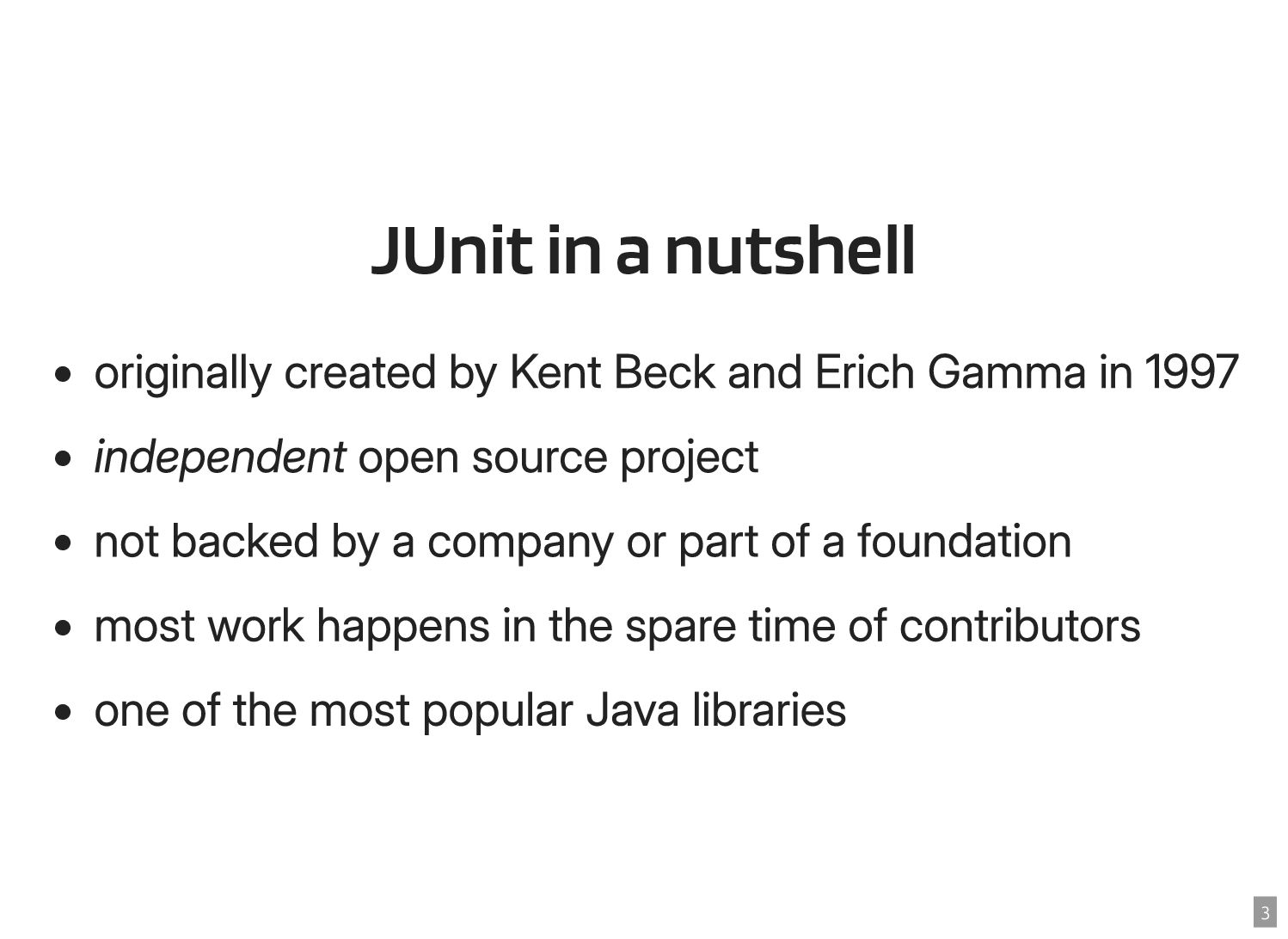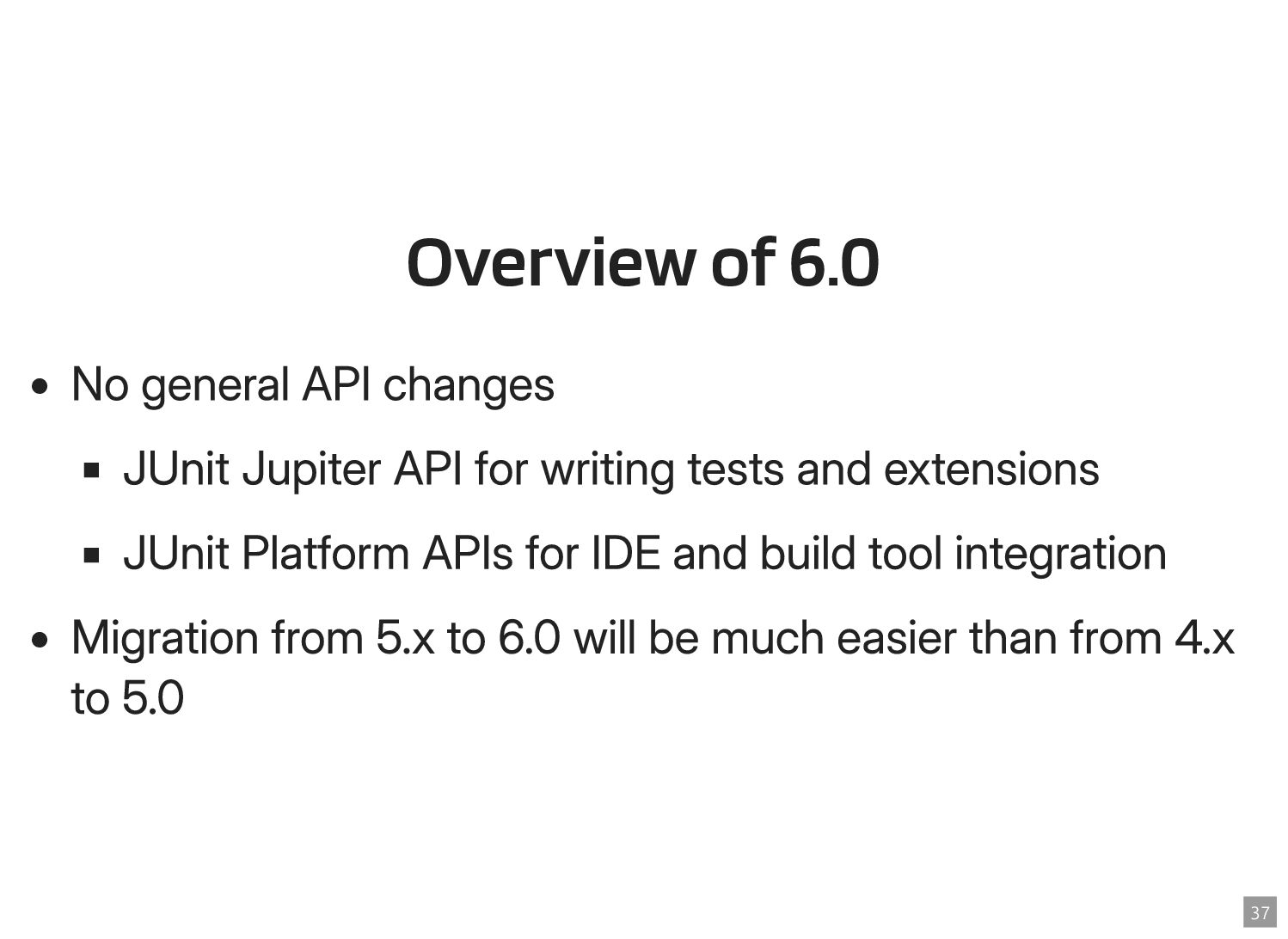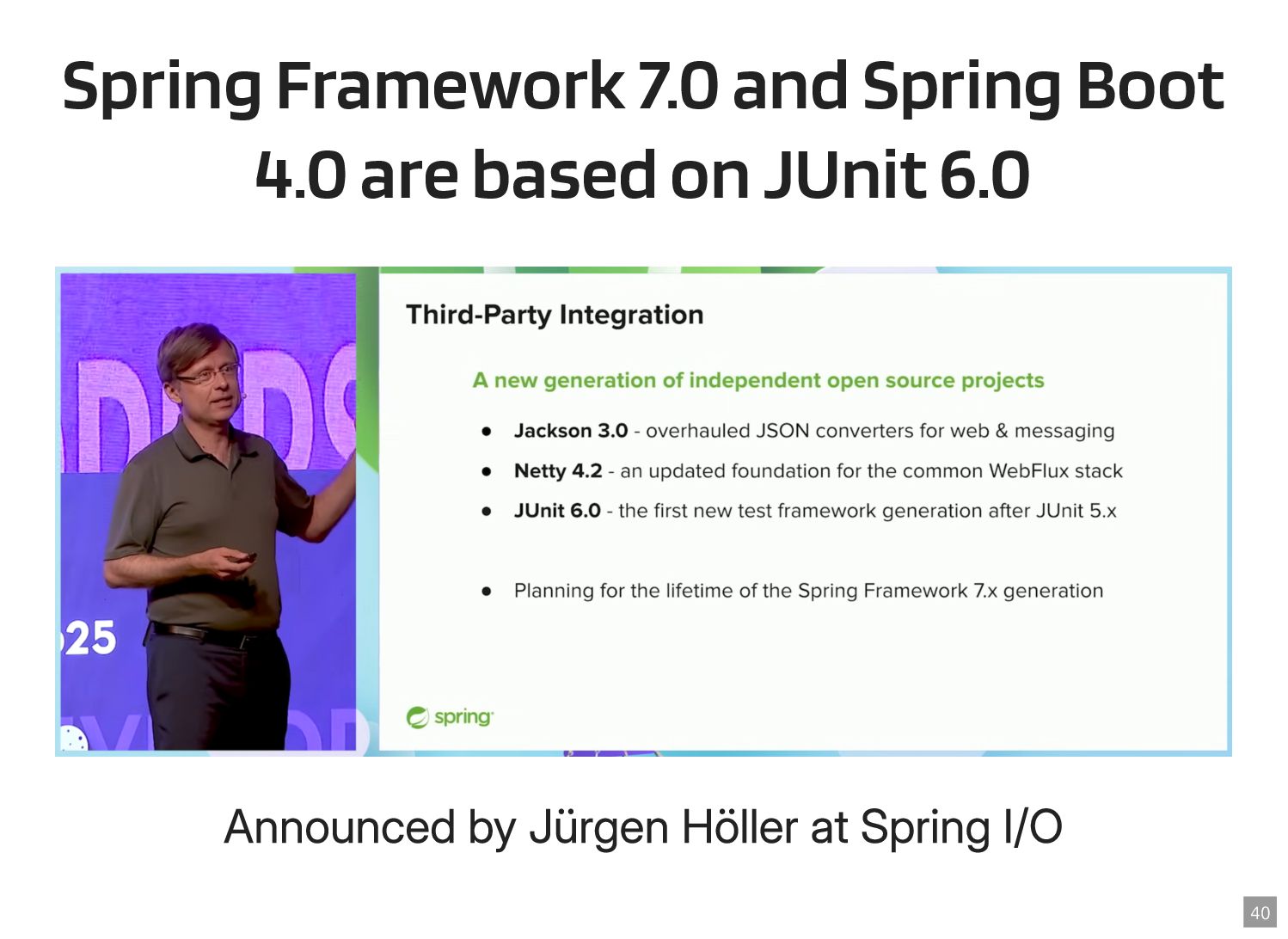 Thanks to the Sovereign Tech Fund I had the opportunity to work full-time on JUnit this year. In this talk, I‘ll report on my experiences and walk you through the new features and enhancements. Most prominently, those are Open Test Reporting, Parameterized Test Classes, Discovery Issues, and the new Java 17 and Kotlin 2.1 baselines.