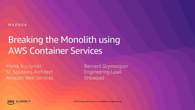 affiliates. All rights reserved. Marek Kuczynski Bernard Grymonpon Sr. Solutions Architect Engineering Lead Amazon Web Services Showpad @marekq @wonko_be [email protected][email protected]