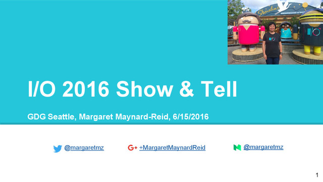 At Google Developer Group (GDG) Seattle June meetup, I gave a lightning talk sharing what I have learned from Google I/O 2016: machine learning everywhere, and Android + Pepper the Robot!
