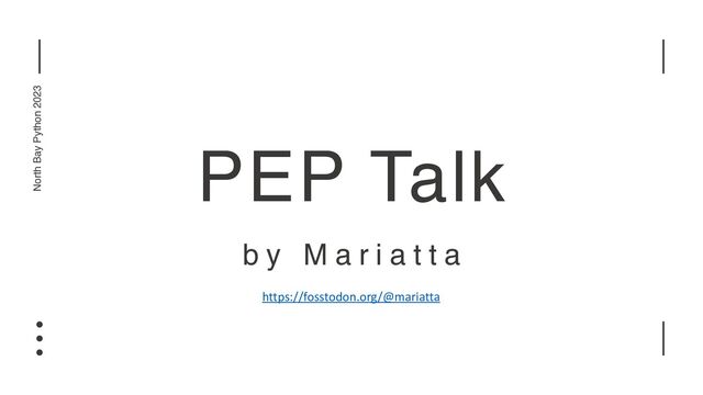 Let's have a PEP talk, where you can learn about the PEP process, what needs a PEP and what doesn't, and how you as community members can take part.