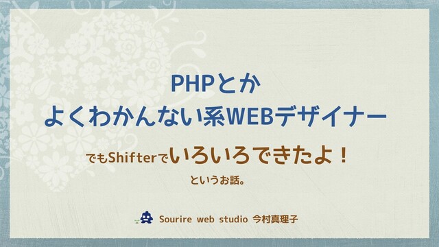 PHPとか よくわかんない系WEBデザイナー でもShifterで いろいろできたよ! というお話。 Sourire web studio 今村真理子