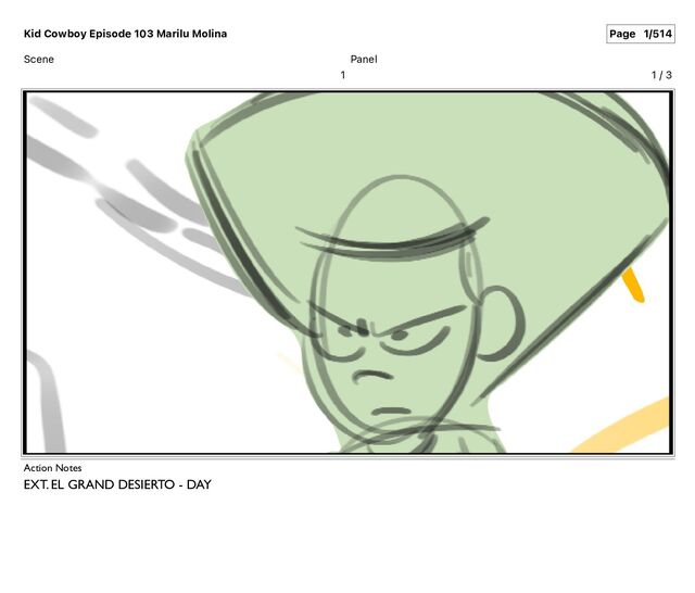 SCENE: Kid and Luna ride their robohorses through dusty sunlight like the heroes they are. Luna wields the Glowgetter. Up ahead, MANNY steers Giant Sinchy toward the AGUAS FRESCAS SALOON. Kid Cowboy Episode 103 Marilu Molina Page 395/514