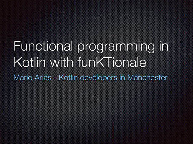 JVM technologies Spring certified trainer 4+ years with Scala 2+ years with Kotlin funKTionale KotlinPrimavera RxKotlin original developer and team leader* NOT an expert on functional programming * I hit “Merge” and “Release” buttons