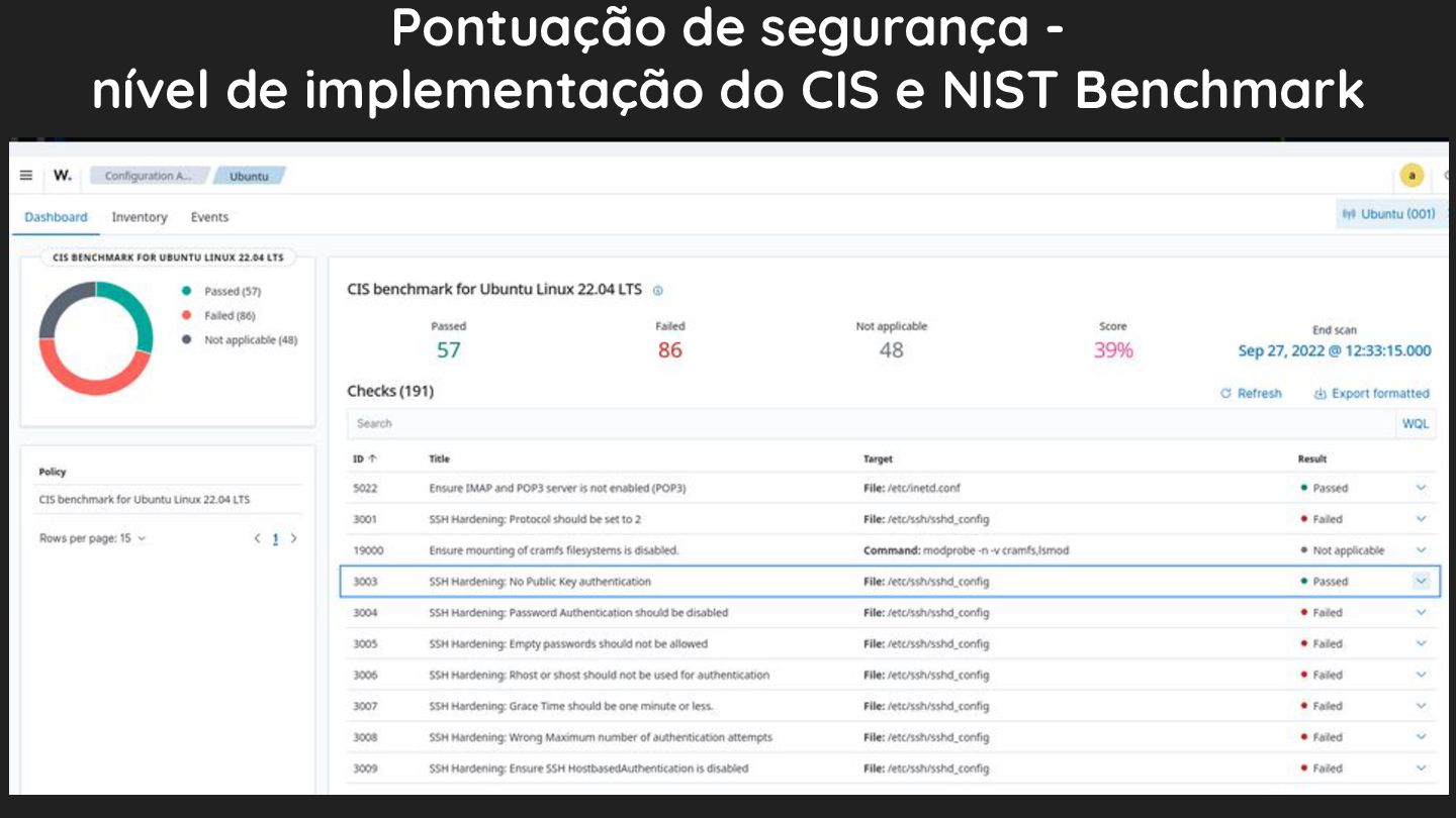 Pontuação de segurança - nível de implementação do CIS e NIST