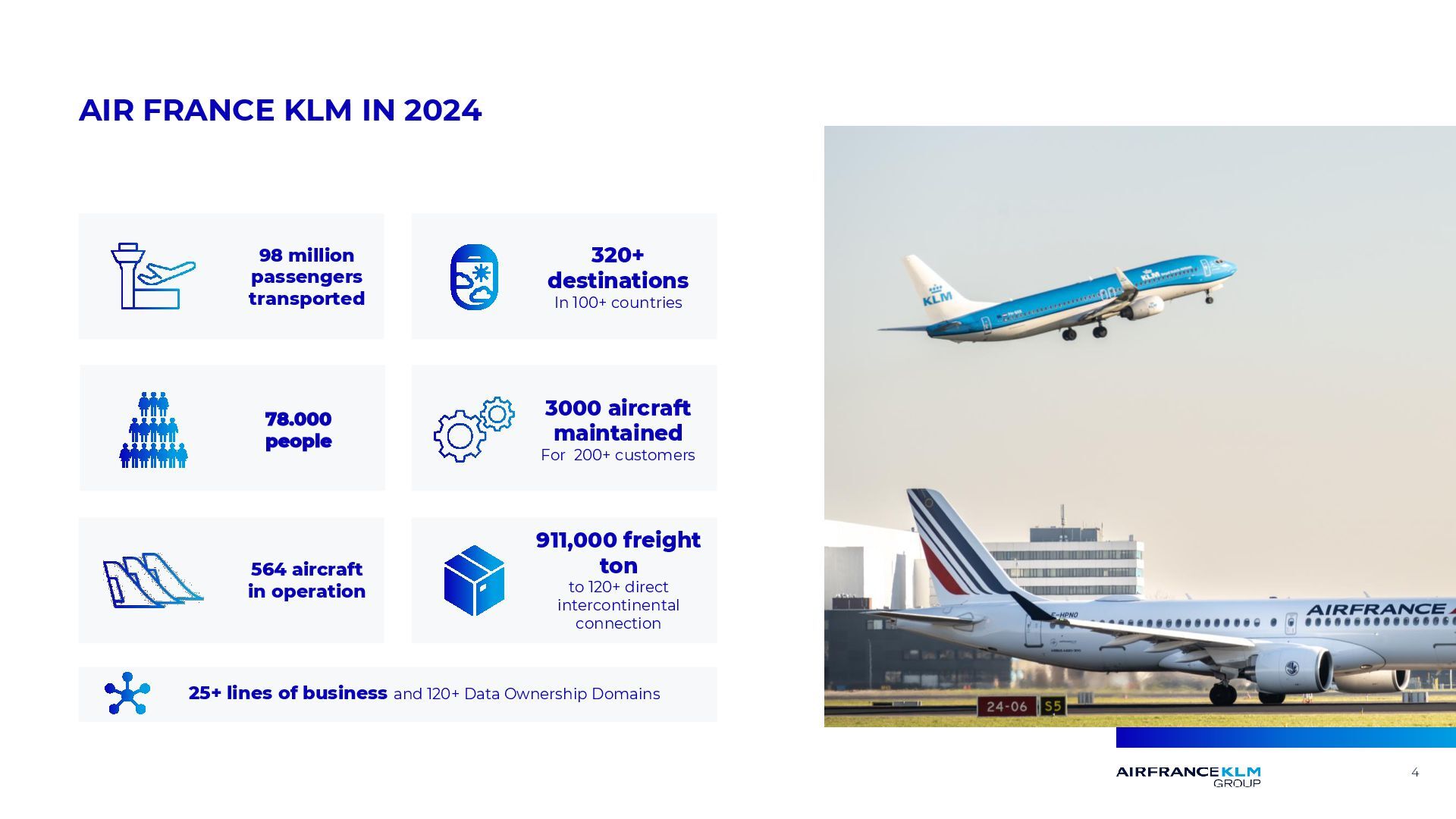 564 aircraft in operation 78.000 people 320+ destinations In 100+ countries 911,000 freight ton to 120+ direct intercontinental connection 3000 aircraft maintained For 200+ customers 25+ lines of business and 120+ Data Ownership Domains