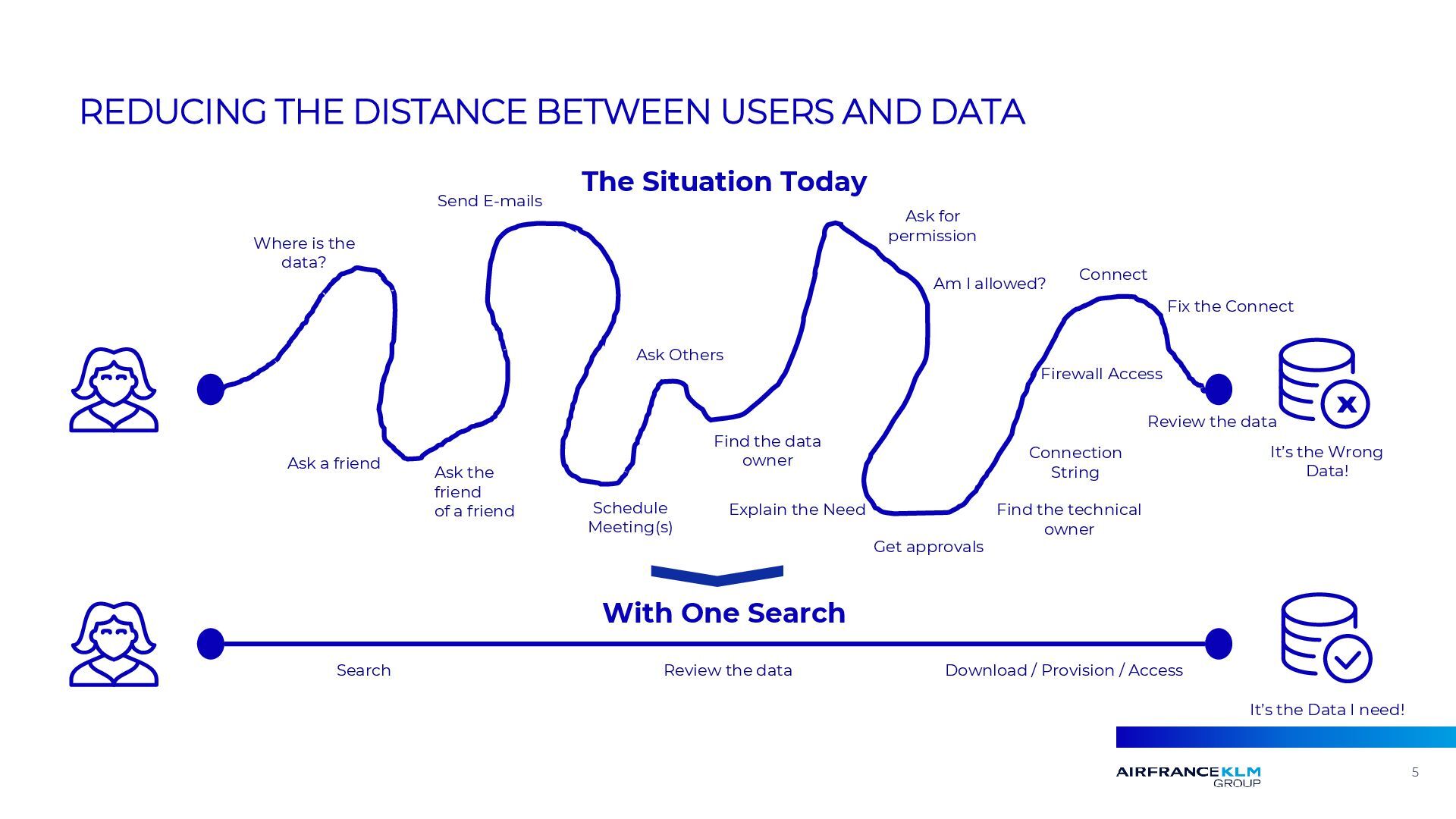 Situation Today With One Search Where is the data? Ask a friend Send E-mails Schedule Meeting(s) Ask Others Find the data owner Ask for permission Get approvals Connection String Firewall Access Connect It’s the Wrong Data! Search Download / Provision / Access It’s the Data I need! Explain the Need Am I allowed? Find the technical owner Fix the Connect Ask the friend of a friend Review the data Review the data