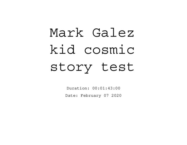 Mark Galez kid cosmic story test Duration: 00:01:43:00 Date: February