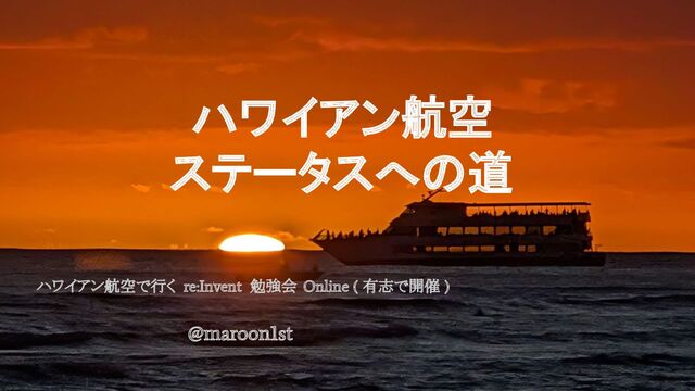 ハワイアン航空で行くre:Invent 勉強会 Online (有志で開催) https://connpass.com/event/344237/
