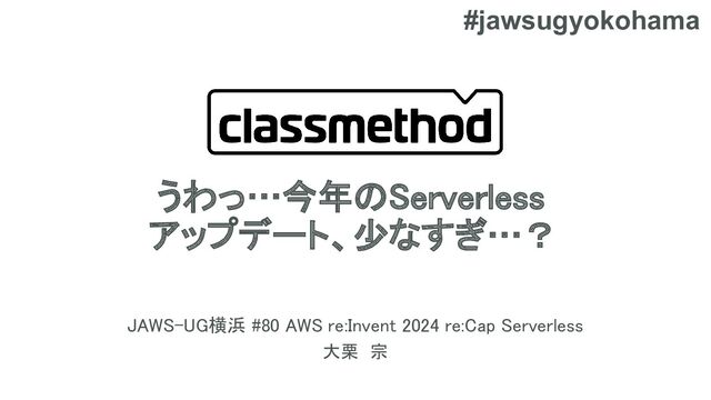 JAWS-UG横浜 #80 AWS re:Invent 2024 re:Cap Serverless https://jawsug-yokohama.connpass.com/event/337182/