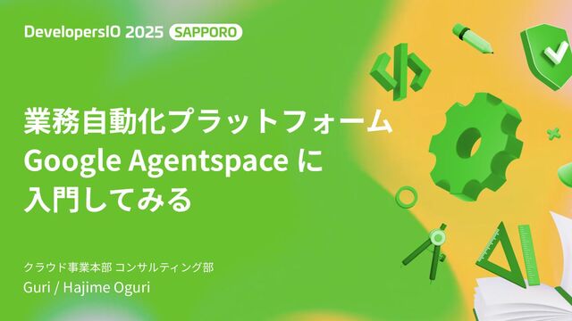 DevelopersIO 2025 Sapporo #devio2025 https://events.classmethod.jp/seminar/250926-developersio2025-sapporo/ Google Agentspace がどのようなものなのかを解説しました。