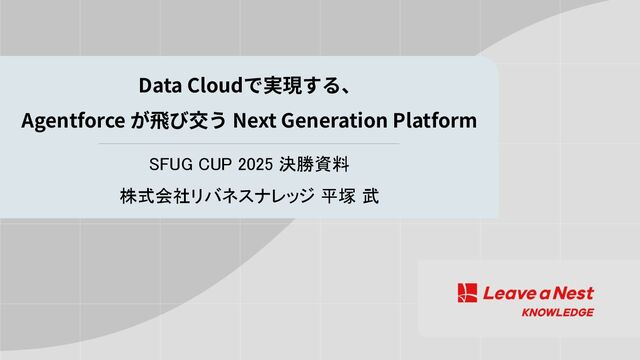 SFUG CUP 2025 決勝資料 株式会社リバネスナレッジ 平塚 武 Data Cloudで実現する、 Agentforce