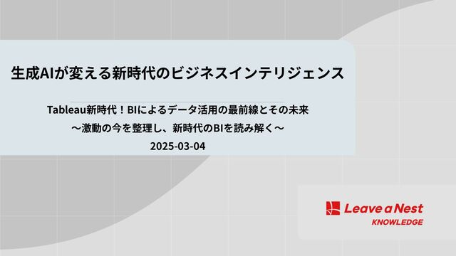 Tableau新時代!BIによるデータ活⽤の最前線とその未来 〜激動の今を整理し、新時代のBIを読み解く〜 2025-03-04 ⽣成AIが変える新時代のビジネスインテリジェンス