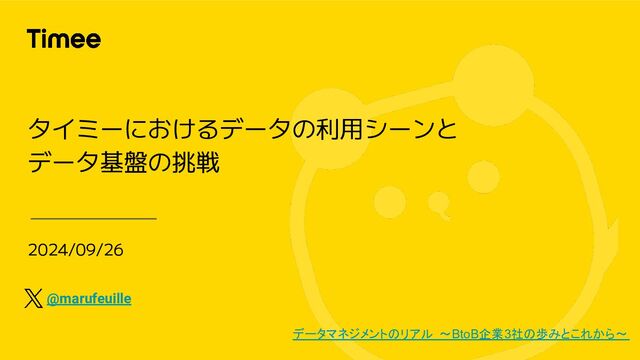 2024/09/26 タイミーにおけるデータの利用シーンと データ基盤の挑戦 @marufeuille データマネジメントのリアル 〜BtoB企業3社の歩みとこれから〜