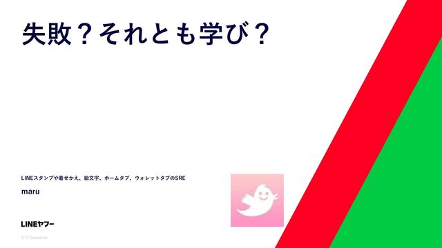 © LY Corporation 失敗?それとも学び? LINEスタンプや着せかえ、絵⽂字、ホームタブ、ウォレットタブのSRE maru