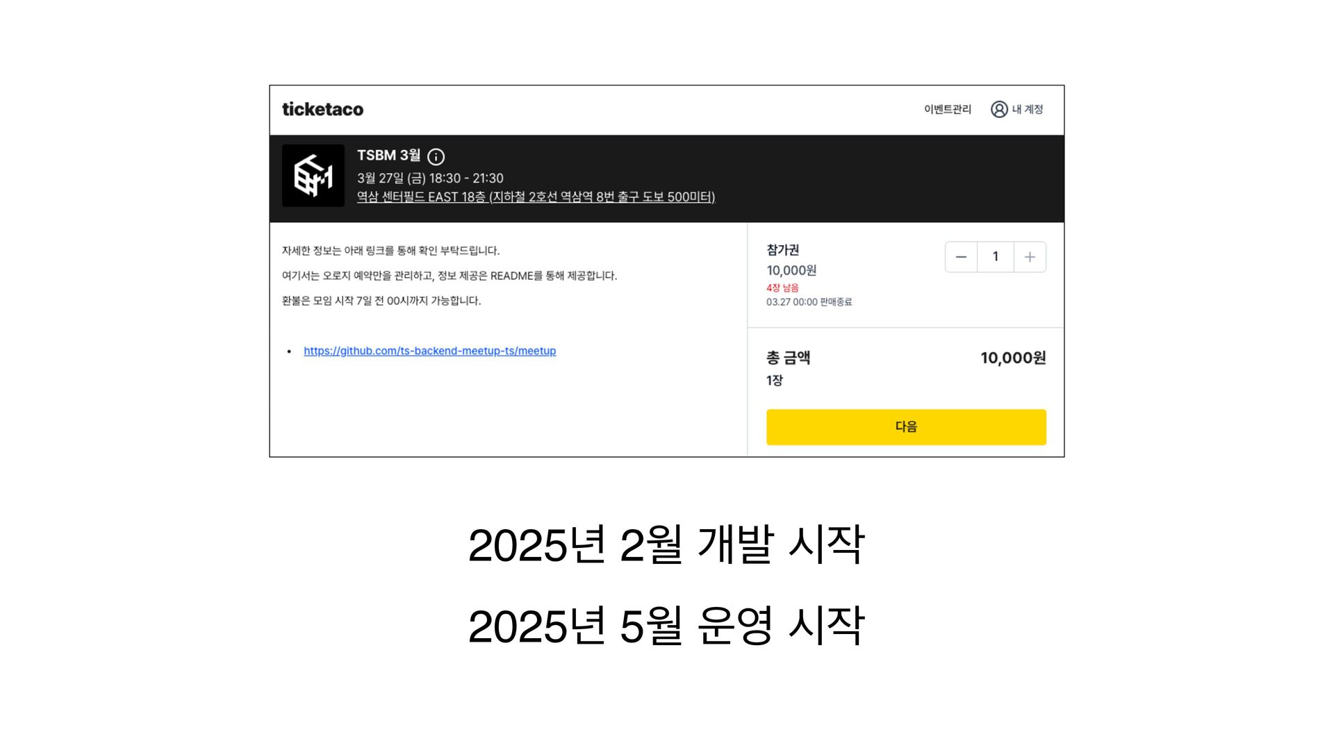 이벤트 플랫폼 티켓타코를 AI를 이용해 개발하며 1인 기업으로 운영하고 있습니다. AI를 활용한 서비스 개발 방식과 수익화 과정, 그리고 1년 동안 서비스를 지속할 수 있었던 이유를 공유합니다.